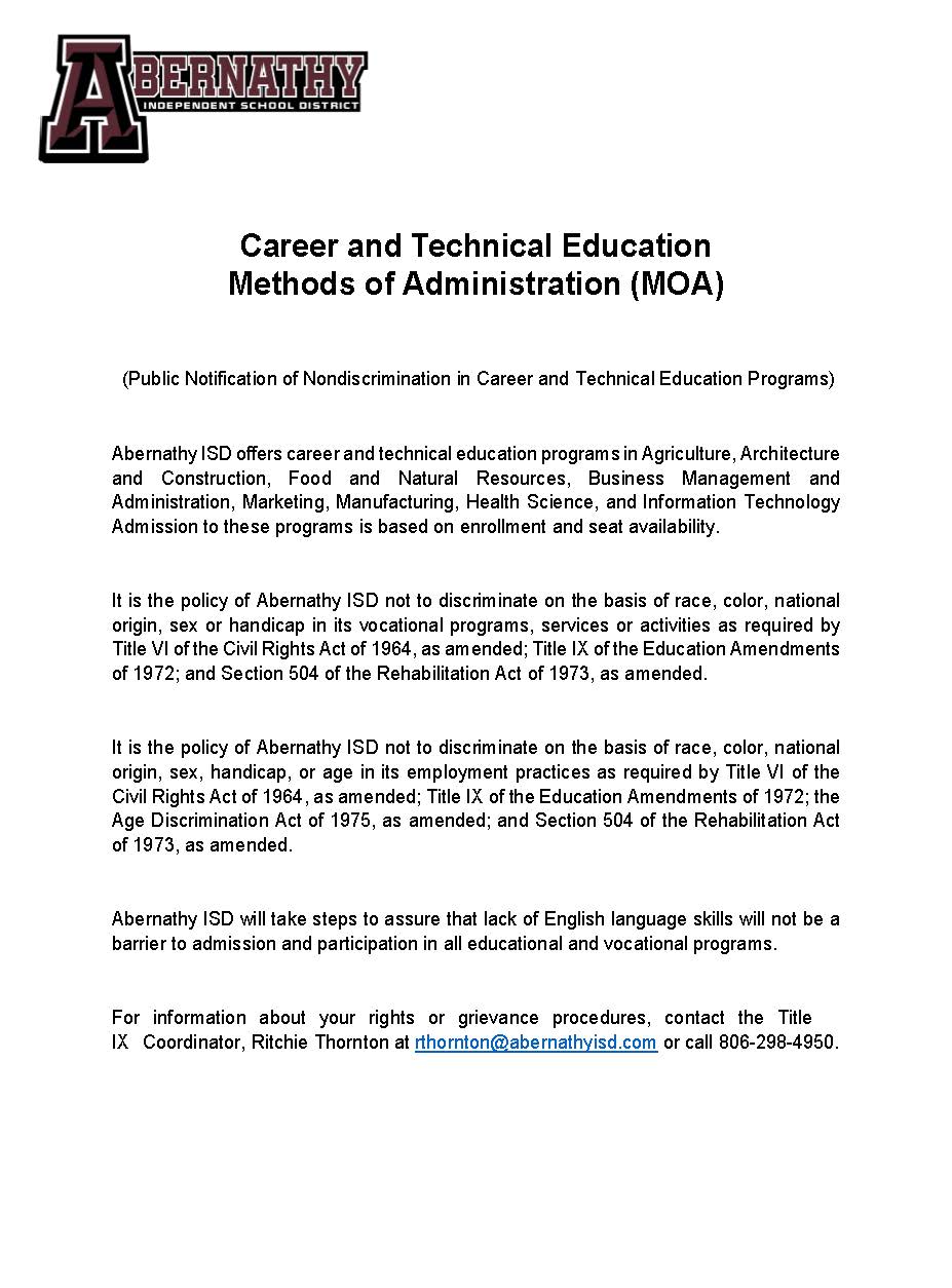Abernathy ISD is dedicated to providing quality and equity, while providing the leadership necessary in creating a culture where students identify, select, and pursue career pathways, earn industry certifications, and develop necessary skills that lead to post-secondary career and/or college opportunities.