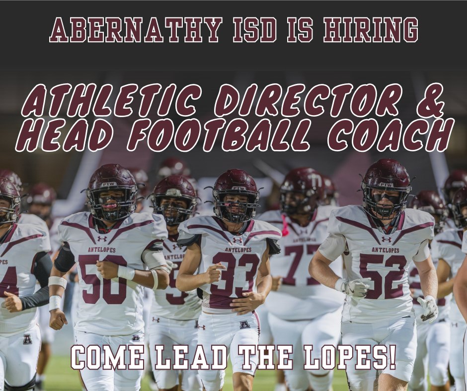 Abernathy ISD is looking for a leader of leaders to guide our athletic program and serve as Head Football Coach.We are a perennial playoff contender with strong groups on the rise, incredible facil...